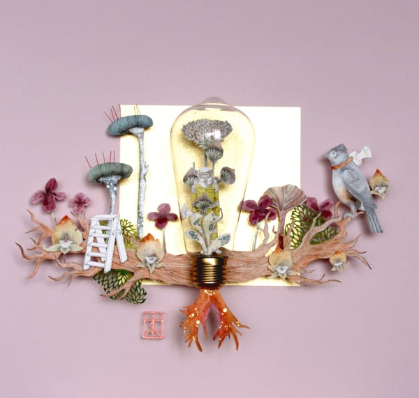For Teresa Currea, paper is what canvas is to painters and, despite its fragility, is also what bronze or stone is to sculptors. It is not just the raw material of her works, but also the productive element of her images; the foundation from which the rest of her fantastic compositions originate. Her work will move you to utopic worlds; worlds of dreams where birds and flowers, mushrooms and astronauts mesh so as to guide the observer to improbable worlds, at the same time enabling one's own imagination to fly.